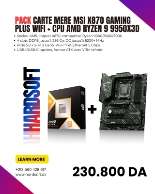 Carte mère : MSI X870 Gaming Plus WiFi, chipset X870, format ATX, DDR5 jusqu’à 8000 MHz OC, Wi-Fi 7 et LAN 2.5 G, 2× M.2 PCIe 5.0