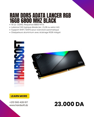 RAM : 2× ADATA LANCER RGB DDR5 16 Go, 6800 MHz, éclairage RGB